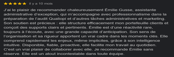 - Gestion des tâches quotidiennes : suivi des tâches et rappels importants, classement, services de transcription